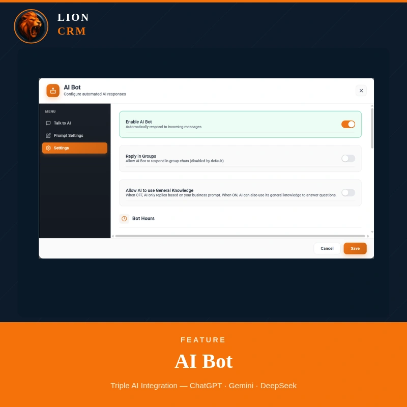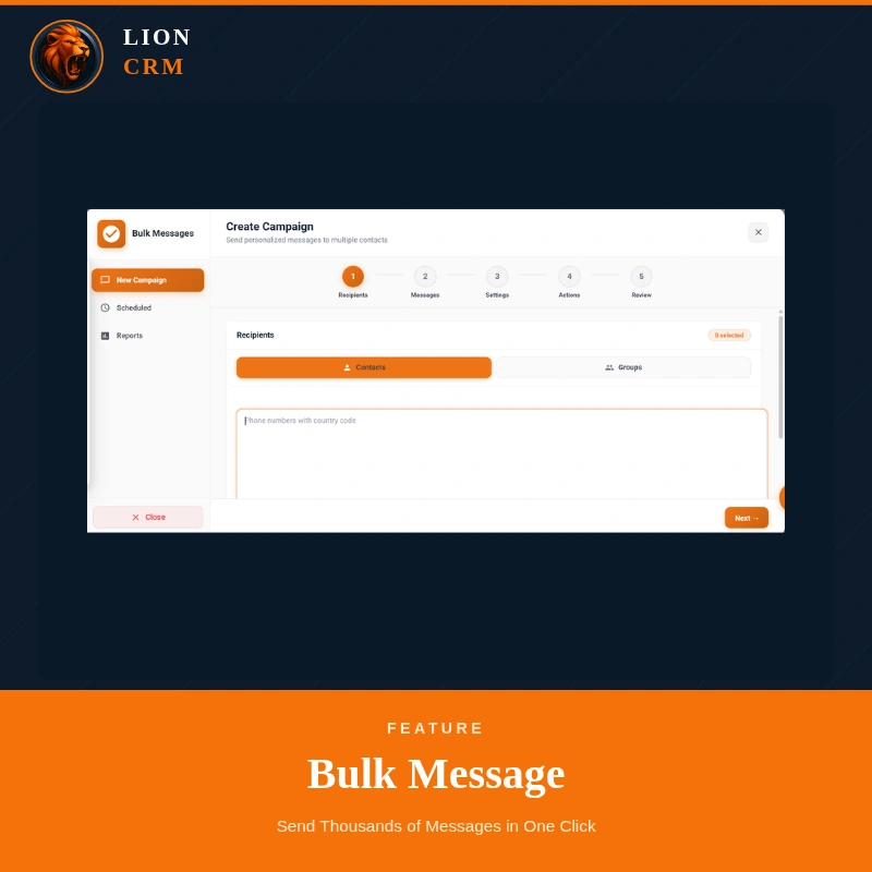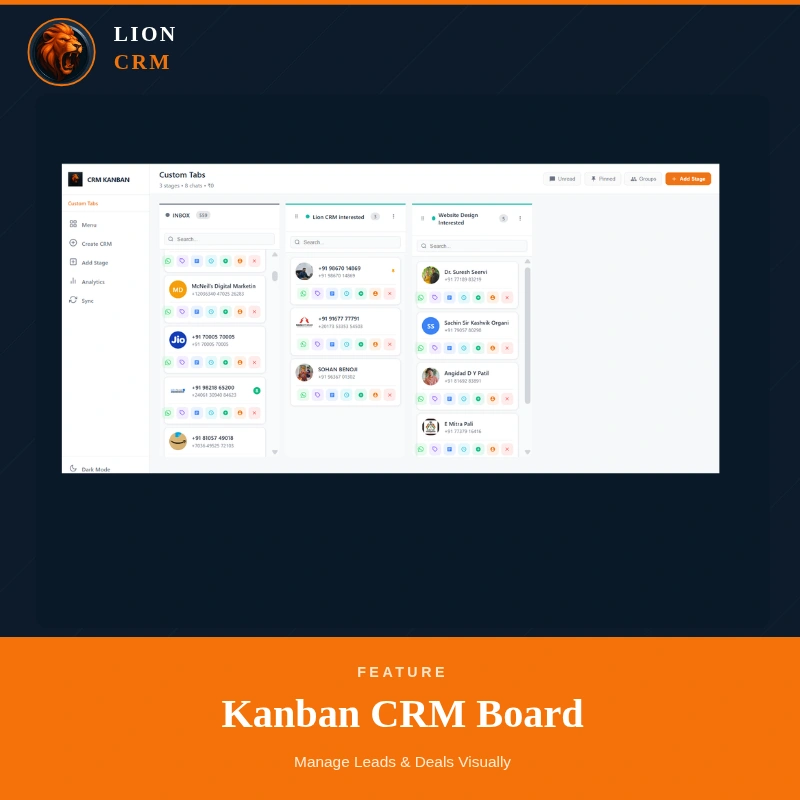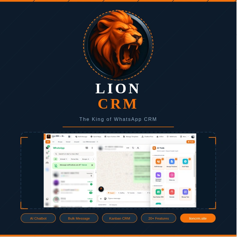 Lion CRM is the best WhatsApp CRM Chrome Extension for businesses, freelancers, and sales teams who want to automate WhatsApp marketing, manage customer relationships, and close more deals — all from WhatsApp Web.